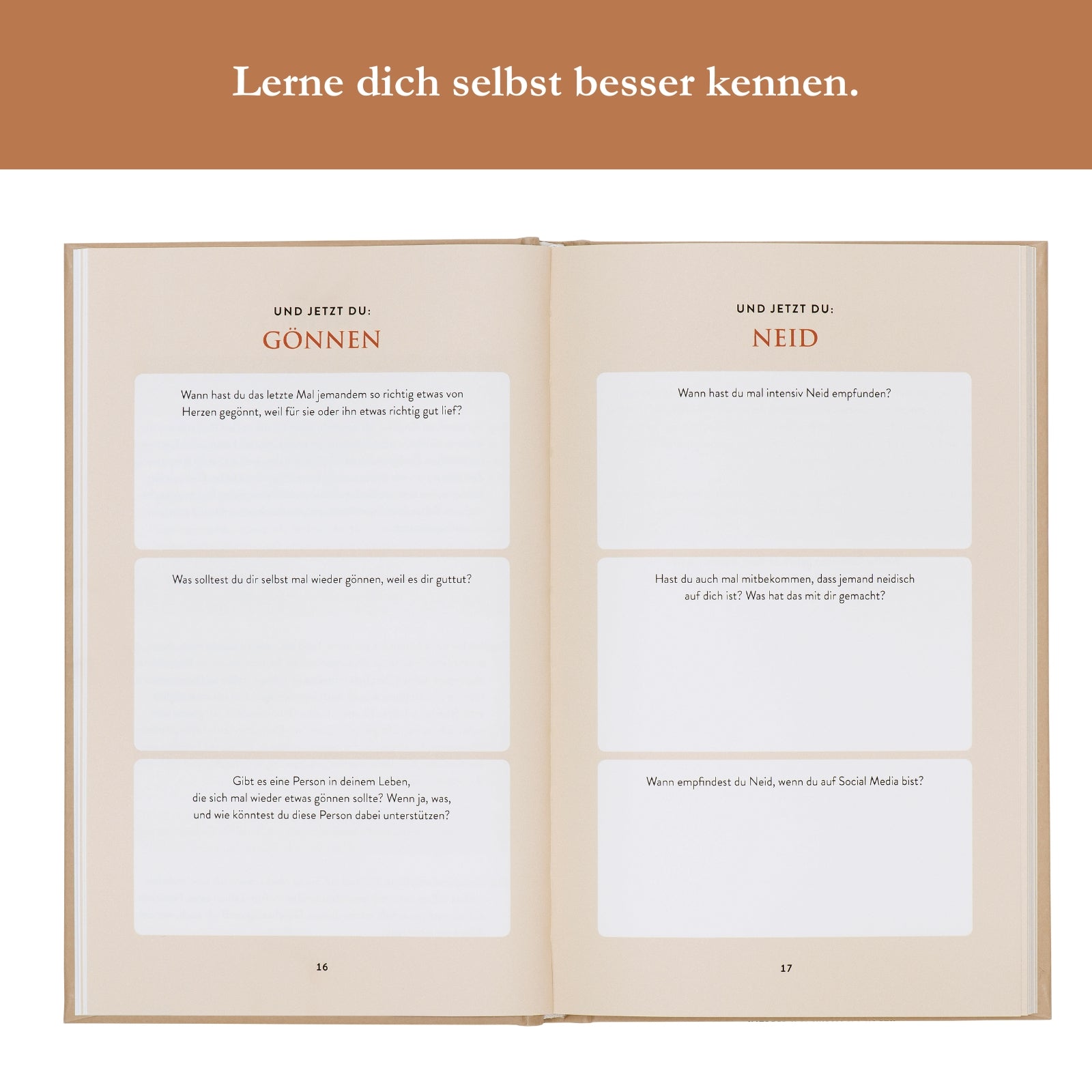 Ob auf dem Sofa, im Bett oder bei Kerzenschein – dieses Journal wird schnell zu deinem liebsten Begleiter am Abend. Statt an der Oberfläche zu kratzen, geht es hier um echte Gefühle. Du erkennst Muster, durchbrichst alte Denkweisen und findest Klarheit.